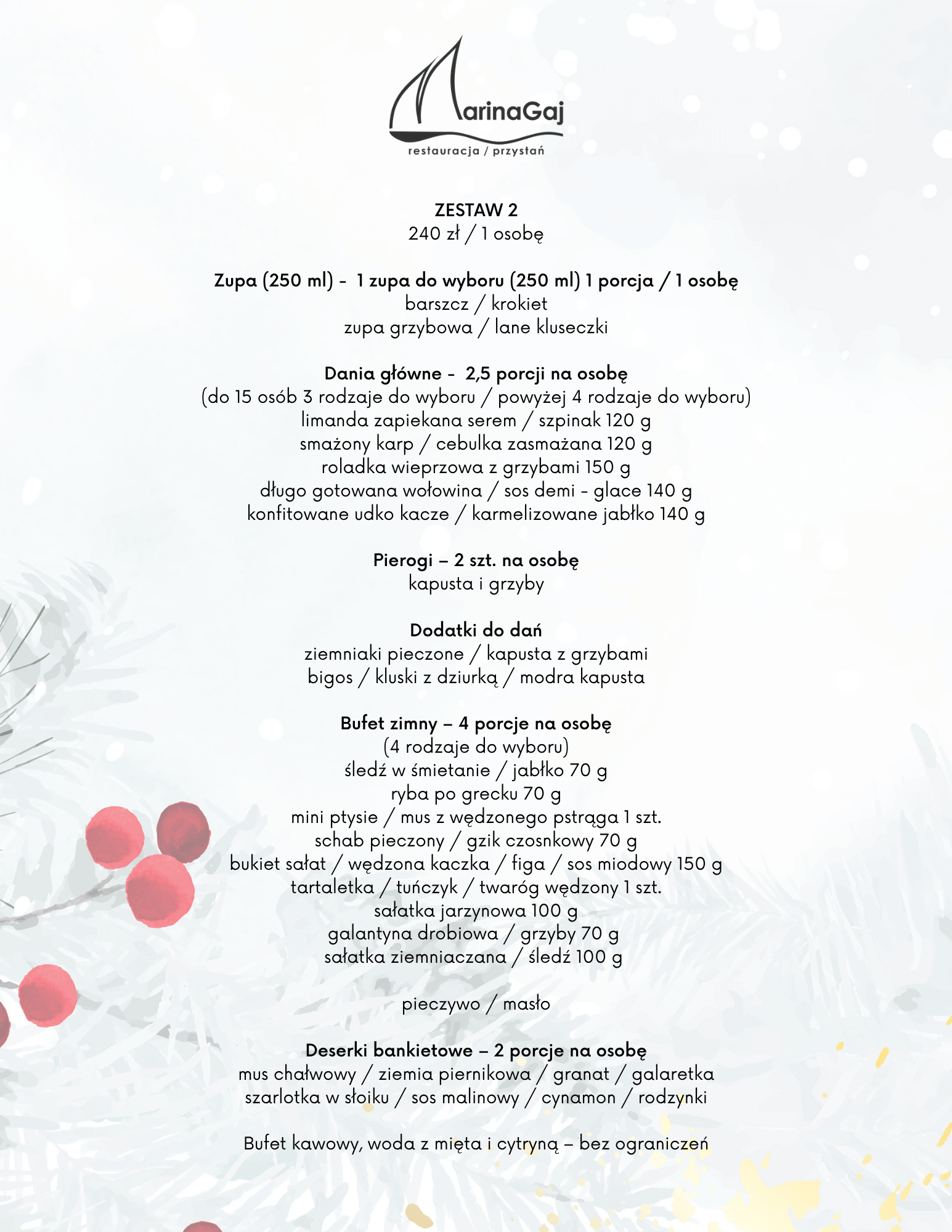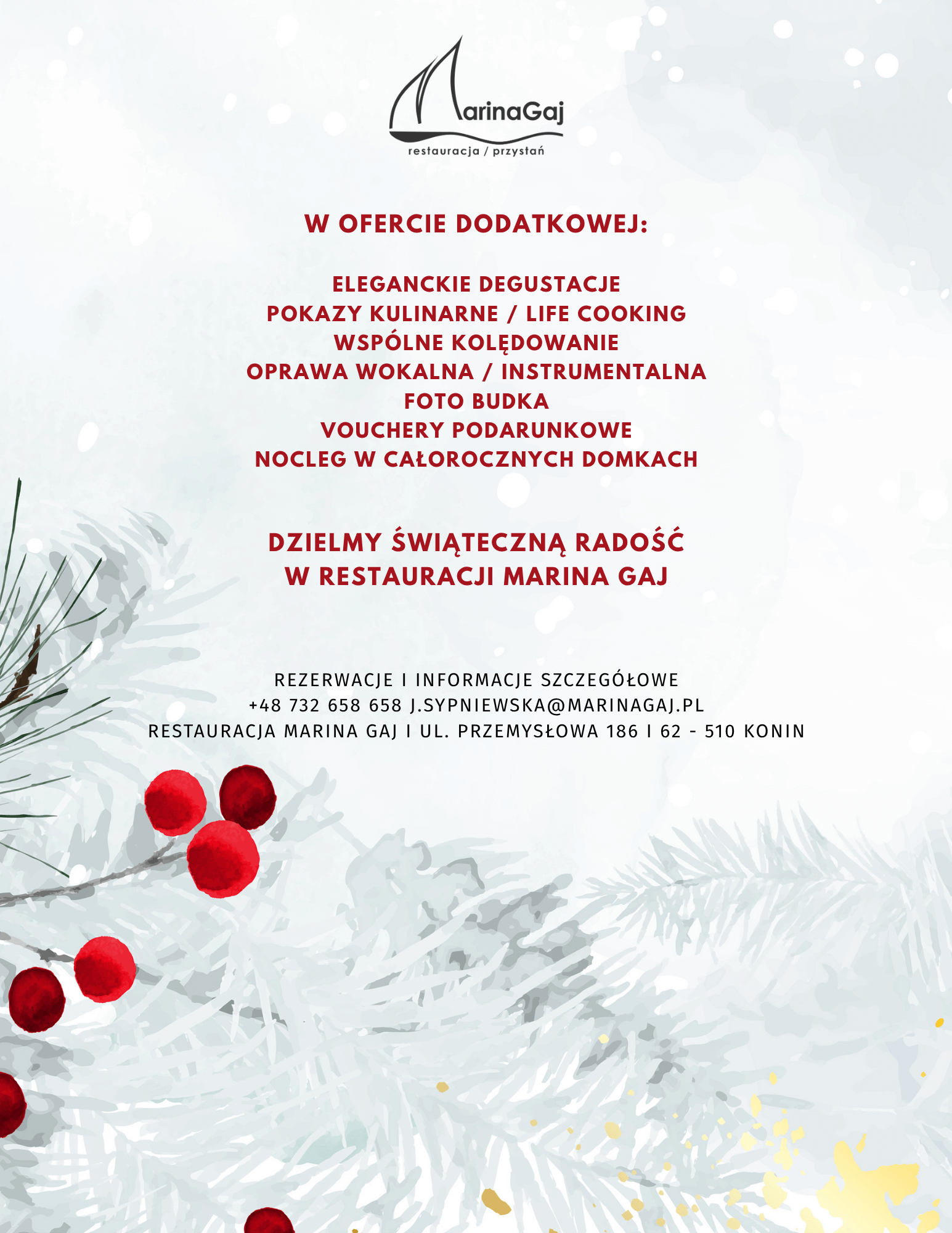 Niech ciepło naszej przystani umili moment całorocznych podziękowań, a doskonały serwis i wyjątkowe kompozycje smakowe – dodadzą elegancji wspólnej biesiadzie!
